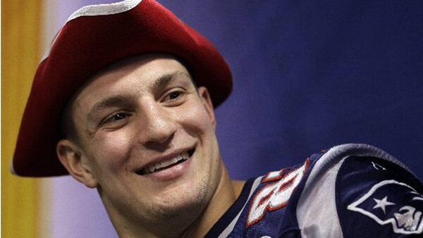 New England Patriots tight end Rob Gronkowski answers a question during Media Day for NFL football's Super Bowl XLVI Tuesday, Jan. 31, 2012, in Indianapolis. (AP Photo/Mark Humphrey)The Associated Press