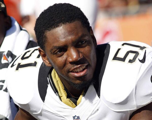 FILE - This Oct. 21, 2012 file photo shows New Orleans Saints linebacker Jonathan Vilma on the bench at an NFL game against the Tampa Bay Buccaneers in Tampa.Scott Iskowitz/The Associated Press