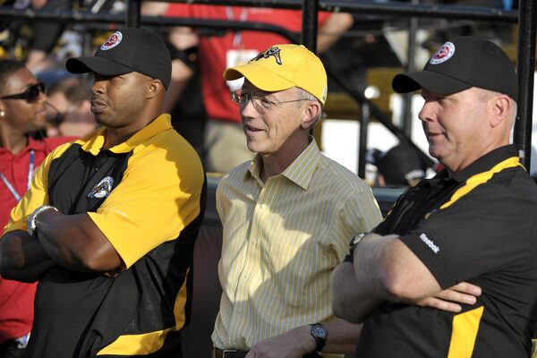 Hamilton Tiger-Cats owner Bob Young (centre) says the team made a serious mistake hiring Art Briles as an assistant coach.MIKE CASSESE/Reuters