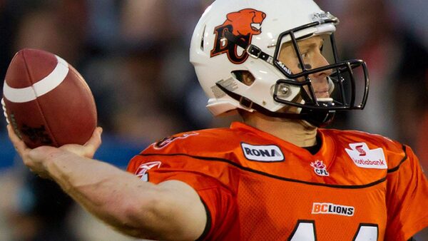 B.C. Lions' Travis Lulay throws against the Calgary Stampeders during the first half of a CFL football game in Vancouver, B.C., on Friday July 8, 2011. THE CANADIAN PRESS/Darryl DyckDarryl Dyck/The Canadian Press