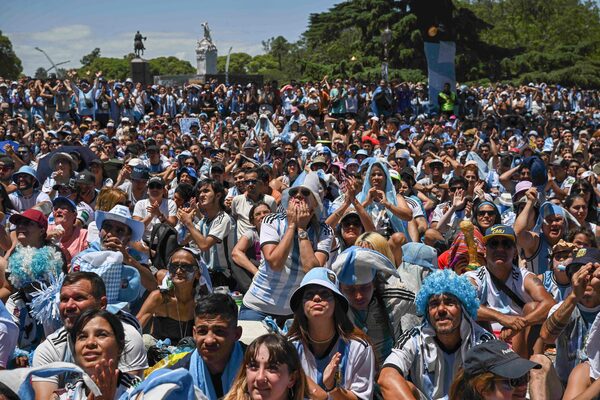 Fans of Argentina gather en masse to watch the live broadcast of the Qatar 2022 World Cup final match between Argentina and France in Buenos Aires, Argentina on Dec.18.LUIS ROBAYO/AFP/Getty Images
