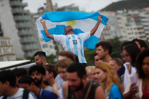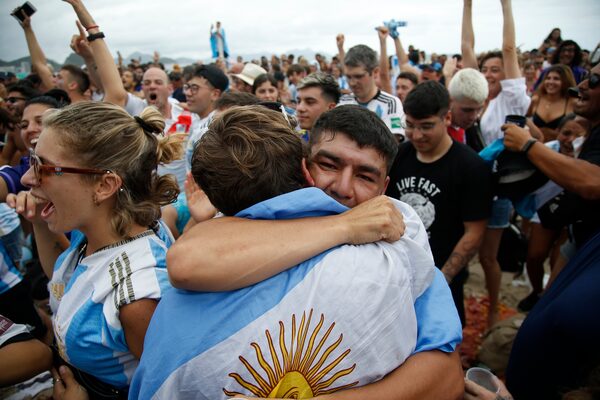 Argentina fans on Copacabana beach, in Rio de Janeiro, celebrate a second goal for their team in the 2022 World Cup final on Sunday.Bruna Prado/The Associated Press