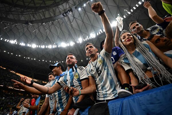 Argentina supporters cheer at the 2022 World Cup final match at Lusail Stadium in Lusail, Qatar on Sunday.ANNE-CHRISTINE POUJOULAT/AFP/Getty Images