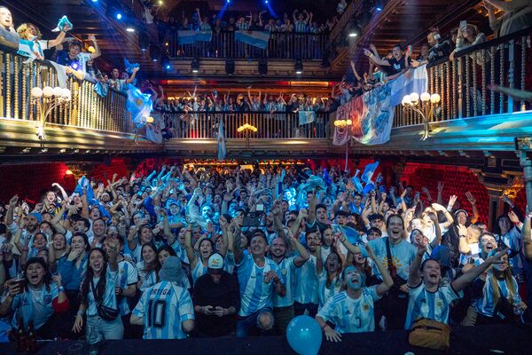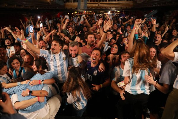 Argentina fans celebrate in a bar in Madrid, Spain during the World Cup final between Argentina and France on Dec. 18.Andrea Comas/The Associated Press