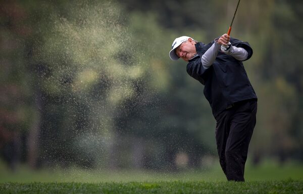 Wes Short Jr. hits from a sand trap on the seventh fariway during the PGA Tour Champion's Shaw Charity Classic in Calgary on Sept. 1, 2019.Jeff McIntosh/The Canadian Press