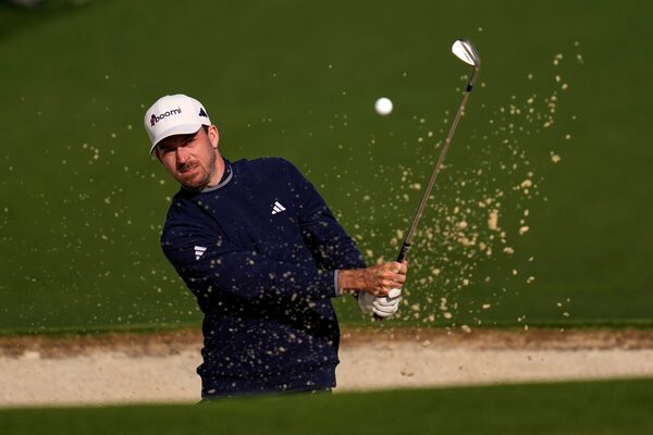 Canadian Nick Taylor hits from the bunker on the second hole during the second round at the Masters on April 11, 2025, in Augusta, Ga.Ashley Landis/The Canadian Press