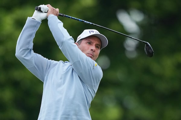 Mike Weir tees off on the tenth hole during first round at the Canadian Open, in Toronto, on June 8, 2023.Nathan Denette/The Canadian Press