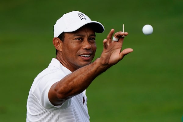 Tiger Woods catches a ball at the driving range during a practice round on Nov. 11, 2020, in Augusta, Ga.Matt Slocum/The Associated Press