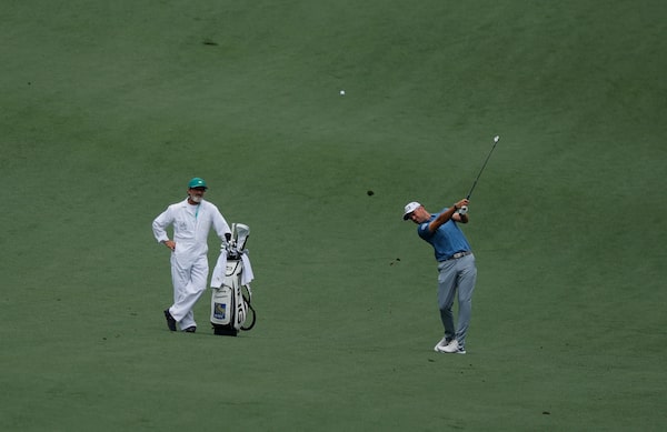 Canada's Corey Conners hits his approach on the 10th hole during a practice round at the Augusta National Golf Club on Monday.Mike Blake/Reuters