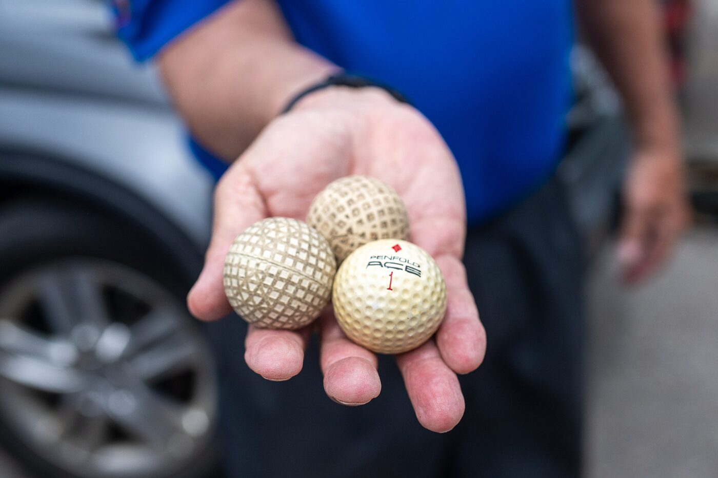 Their shared passion for this yester-year tech is on display. It’s obvious they’ve been hopelessly smitten with the sport for decades. They show off antique golf balls – the kind they rarely hit for fear of cracking or losing. They show off putters with smooth faces – before the days of ridges on club faces.