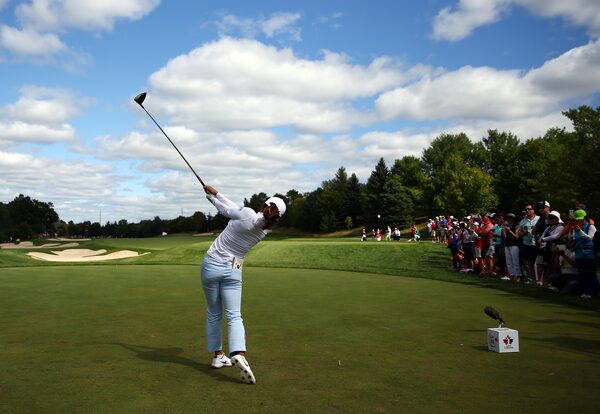 Jin Young Ko of Korea hits her tee shot on the 10th hole during the third round of the CP Women's Open at Magna Golf Club on August 24, 2019 in Aurora, Canada.Vaughn Ridley/Getty Images