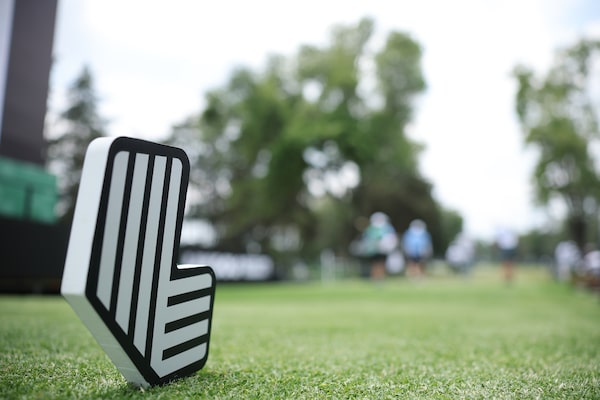 A LIV golf tee box sign is seen prior to LIV Golf Mexico City at Club de Golf Chapultepec on Wednesday in Mexico City.Hector Vivas/Getty Images