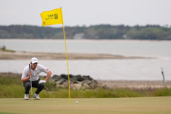 Matt Fitzpatrick, of England, prepares to putt on the 18th hole during the final round of the RBC Heritage golf tournament on Sunday in Hilton Head, S.C.Mike Stewart/The Associated Press
