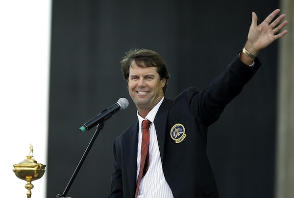 Paul Azinger waves to spectators while speaking at the Ryder Cup opening ceremonies at the Valhalla Golf Club in Louisville, Ky., on Sept. 18, 2008. Azinger will no longer be the lead golf analyst for NBC Sports, ending his five years with the network.Chris O'Meara/The Associated Press