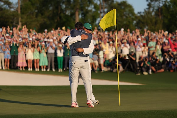 Rory McIlroy celebrates with his caddie Harry Diamond after winning the Masters, in Augusta, Ga., on April 13.Andrew Redington/Getty Images