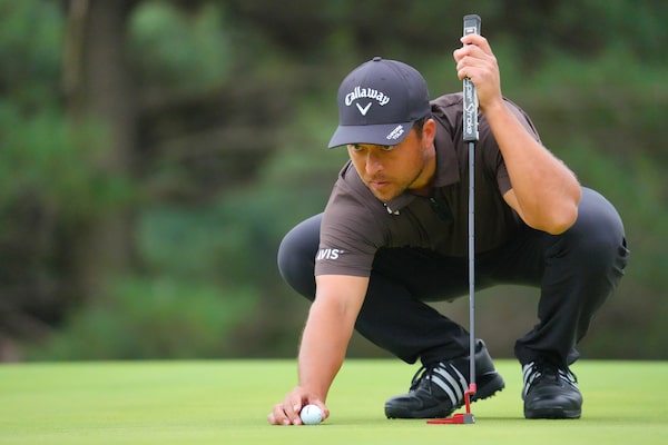 Schauffele lines up a putt on the 17th green during the final round of the Baycurrent Classic Presented by LEXUS at Yokohama Country Club on Sunday in Yokohama, Kanagawa, Japan.Yoshimasa Nakano/Getty Images