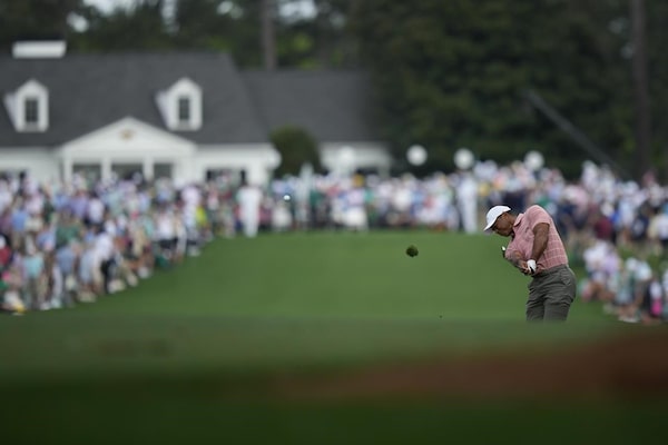 Tiger Woods hits from the fairway on the first hole during the first round of the Masters golf tournament at Augusta National Golf Club, April 11, 2024, in Augusta, Ga.Matt Slocum/The Associated Press