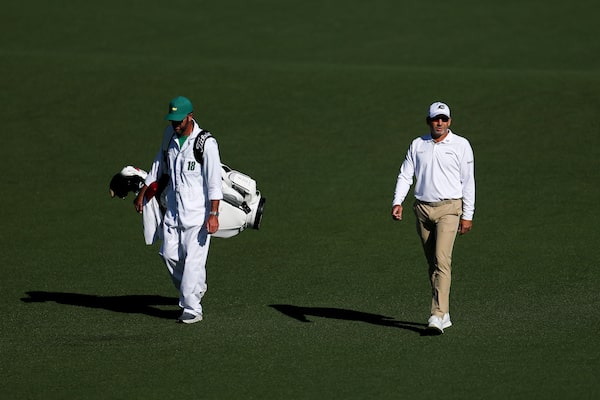 Sergio Garcia of Spain and his caddie Benjamin Thompson walk the second hole during the second round of the Masters at Augusta National Golf Club on Friday in Augusta, Ga.Andrew Redington/Getty Images