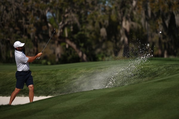 Scottie Scheffler of the United States plays a shot from a bunker on the seventh hole prior to The Players Championship 2026 at The Players Stadium course at TPC Sawgrass on Wednesday in Ponte Vedra Beach, Fla.Jared C. Tilton/Getty Images