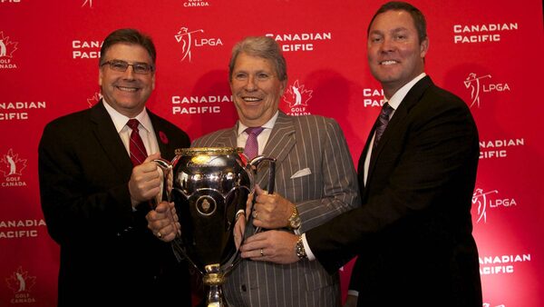 Golf Canada CEO Scott Simmons, Canadian Pacific CEO Hunter Harrison and LPGA Tour Commissioner Mike Whan