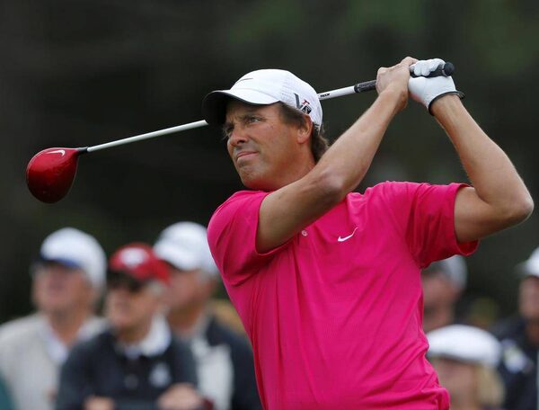 Canadian golfer Stephen Ames hits a driver off the 10th tee of the north course at Torrey Pines during first round play at the Farmers Insurance Open in San Diego, California, January 24, 2013.MIKE BLAKE/Reuters