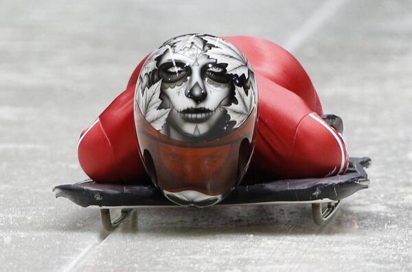Canada's Sarah Reid speeds down the track during an unofficial women skeleton progressive training at the Sanki sliding center in Rosa Khutor, a venue for the Sochi 2014 Winter Olympics near Sochi, February 5, 2014.MURAD SEZER/Reuters