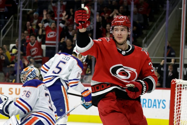 Brent Burns, Jordan Staal, Jordan Martinook and Jesper Fast also scored for the Hurricanes, who snapped a two-game skid and forged a season split with Edmonton. Teuvo Teravainen and Martin Necas each had two assists.