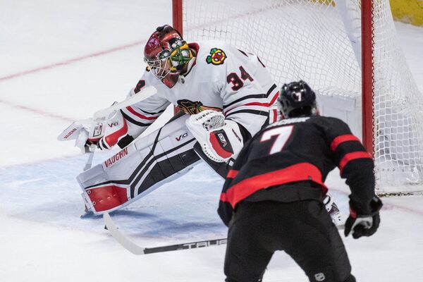 Giroux capitalized on a pass from Alex DeBrincat, a former Blackhawk, and beat Mrazek off his backhand 2:11 into the frame. Just over two minutes later, Tkachuk padded Ottawa’s lead.