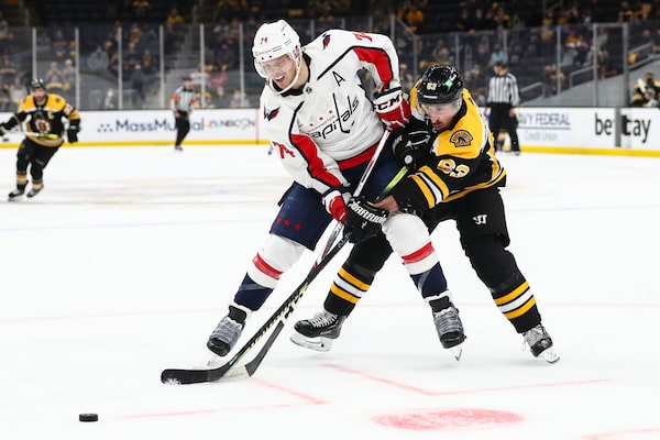 The Capitals went almost 20 minutes without a shot on goal in the middle of the game and were outshot 37-20 in all. But it was still scoreless until Marchand tipped in Pastrnak’s shot on the power play with 12 minutes left in the second.