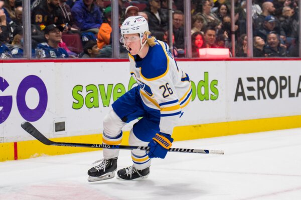 Buffalo’s second goal of the night came during a stretch of four-on-four hockey after Vancouver’s Conor Garland and Buffalo’s Dylan Cozens were called for roughing.