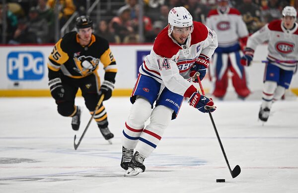 Nick Suzuki (14) of the Montréal Canadiens was one of the forwards named to Team Canada on Wednesday. Suzkuki's strong play this year earned him a roster spot and a trip to the Olympics in February.Justin Berl/Getty Images
