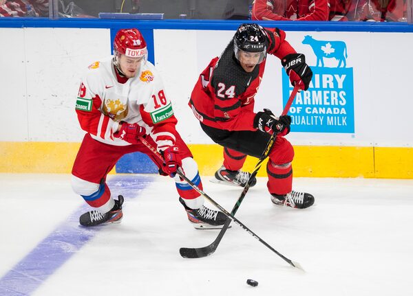 The Vancouver Giants forward drove his shoulder into the head of Czech defenceman Jiri Tichacek in the third period of Canada’s 6-3 win over Czechia to open the tournament Sunday.
