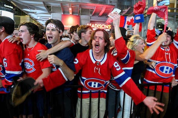 Brunelle reveled in the controlled chaos outside the Bell Centre, which included a walk-in vaccination clinic outside the arena (“Vaccin, vaccin vaccin vaccin,” chanted one nurse, to the tune of Olé Olé Olé). Police officers, primed for unrest, wore almost as much protective gear as Habs goalie Carey Price. Montreal police Constable Veronique Comtois said the city would bolster the police presence for the final round, after having to make 15 arrests during a riot in the moments after the Canadiens defeated the Las Vegas Golden Knights in the Stanley Cup semifinals.