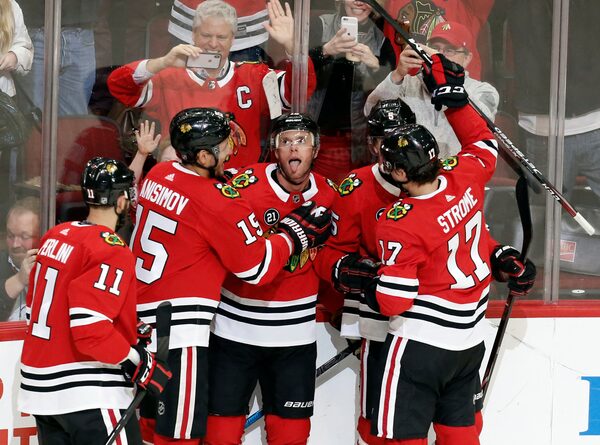 Brandon Saad also scored and Dylan Strome had three assists for the Blackhawks, who have climbed back into the crowded fray for a wild-card spot in the Western Conference. Patrick Kane had an assist to extend his point streak to 13 games.
