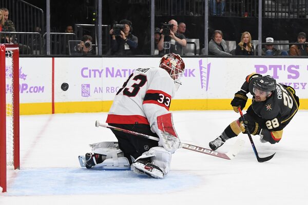 Carrier scored his seventh of the season – his career high is nine – when he skated through the neutral zone, dangled his way past two Senators in the offensive zone and fired an off-balance wrist shot far side to give Vegas a 2-1 lead at 16:23 of the second period.
