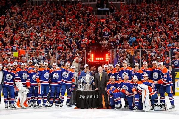 The Edmonton Oilers pose with the Campbell Conference Bowl after winning the Western Conference Championship at Rogers Place, in Edmonton, on June 2.Perry Nelson/Reuters