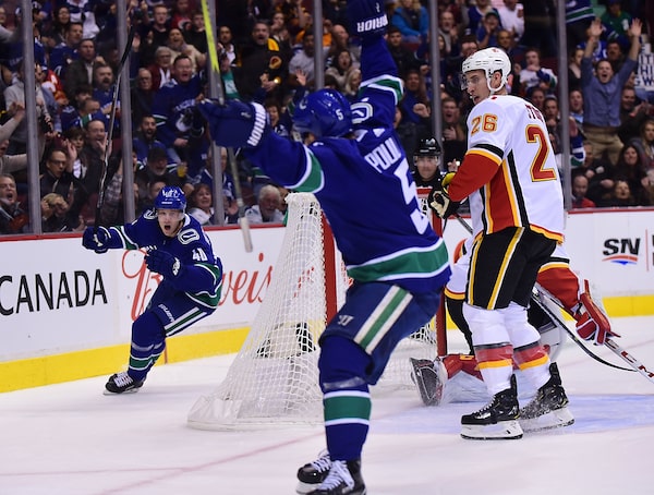 He got on the scoresheet midway through the first period, collecting the puck in the neutral zone and then sprinting into Calgary’s end with teammate Derrick Pouliot for a two-on-one. Pettersson opted not to pass, instead rocketing a wrist shot into the top of the net.