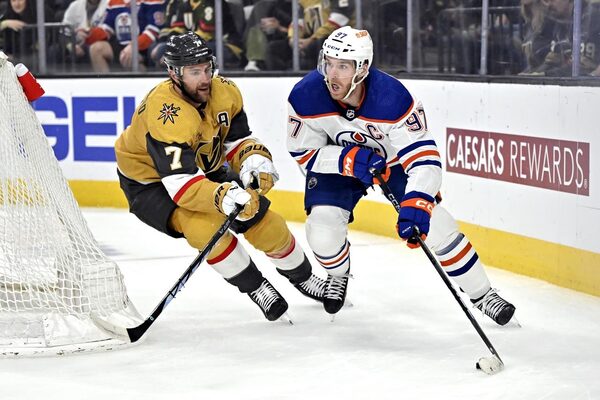 Edmonton wasn’t deterred by committing the first penalty of the game. After Vincent Desharnais’ poke check forced a turnover to spring a 2-on-0 rush, McDavid took a pass from Draisaitl and beat Hill to give the Oilers a 1-0 lead with a short-handed goal.