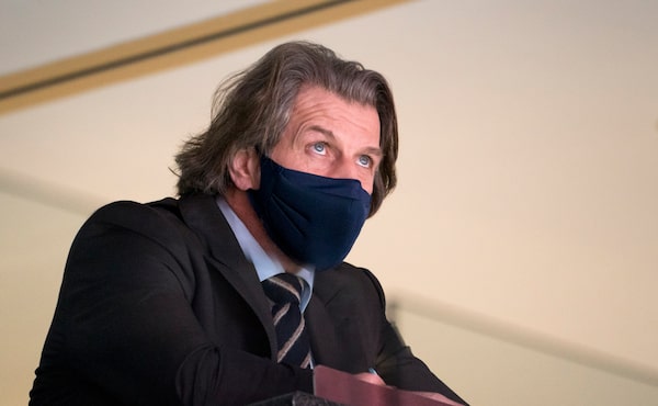 Montreal Canadiens general manager Marc Bergevin looks on during first period NHL hockey action against the Edmonton Oilers, in Montreal on March 30, 2021.Paul Chiasson/The Canadian Press