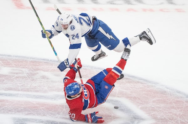 The depth defenceman – in the lineup for the first time these playoffs – flattened Juraj Slafkovsky at centre ice Sunday, sparking the Tampa Bay Lightning in a wild 3-2 comeback over the Montreal Canadiens in Game 4 to tie the first-round series at two games apiece.