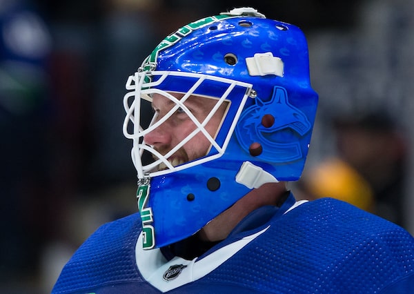 Vancouver Canucks goalie Jacob Markstrom smiles during a stoppage in play during a game against the Los Angeles Kings in Vancouver on Dec. 28, 2019.DARRYL DYCK/The Canadian Press