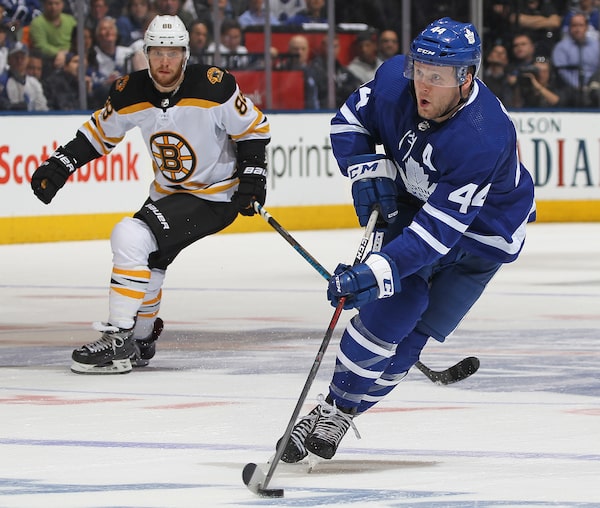 Rielly and partner Ron Hainsey were overmatched in Game 1 of the first-round series against the Bruins’ big line of Patrice Bergeron, Brad Marchand and David Pastrnak. In Game 2, they saw less of the line as the defence pair of Jake Gardiner and Nikita Zaitsev were put into that meat-grinder, but there was still lots of embarrassment to go around.