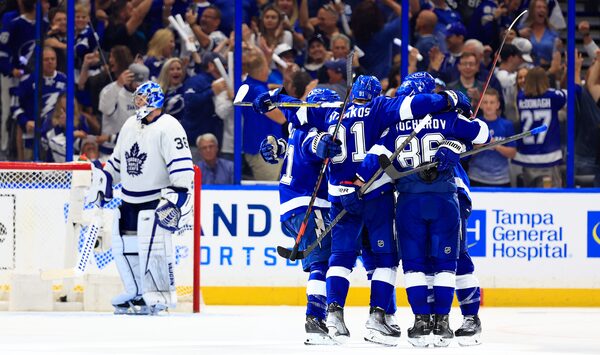 Nikita Kucherov of the Tampa Bay Lightning celebrates a goal against the Toronto Maple Leafs at Amalie Arena in Tampa on May 12.Mike Ehrmann/Getty Images