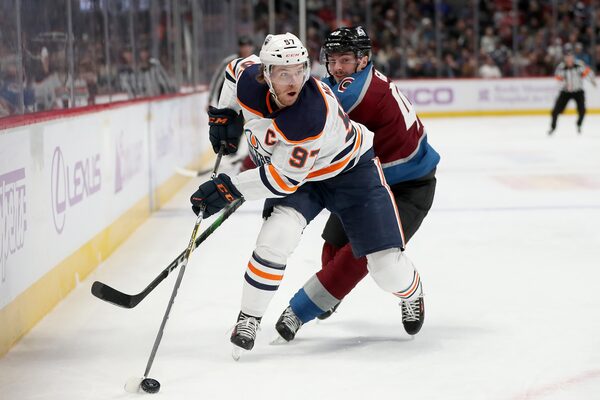 Edmonton Oilers captain Connor McDavid fights for the puck against Samuel Girard of the Colorado Avalanche. The Avs beat the Oilers 4-1 on Nov. 27, 2019.Matthew Stockman/Getty Images