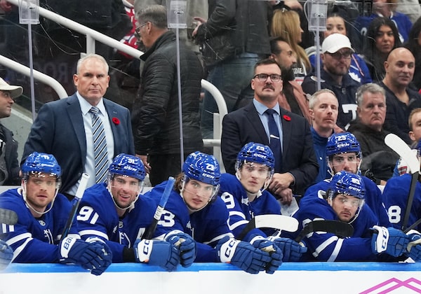 Toronto Maple Leafs head coach Craig Berube watches his team play against the Montreal Canadiens during at Scotiabank Arena in Toronto, on Nov. 9.Nick Turchiaro/Reuters
