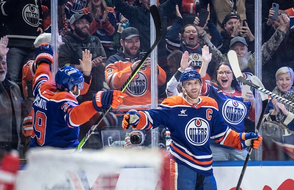 Edmonton Oilers' Connor McDavid celebrates his 1000th point, against the Nashville Predators in Edmonton on Nov. 14.JASON FRANSON/The Canadian Press