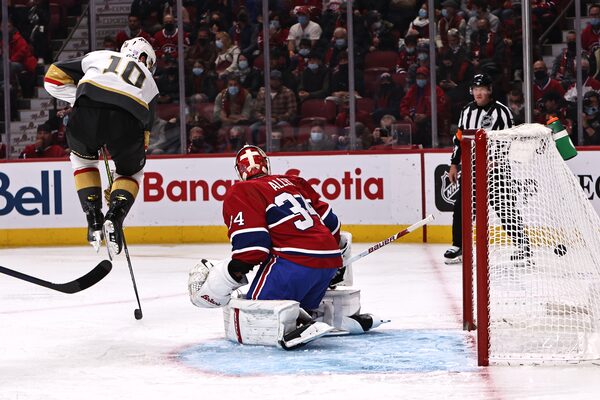 Vegas Golden Knights defenceman Alex Pietrangelo (7) (not pictured) scores a goal against Montreal Canadiens goaltender Jake Allen (34) and centre Nicolas Roy (10) during the second period at Bell Centre.Jean-Yves Ahern/USA TODAY Sports via Reuters