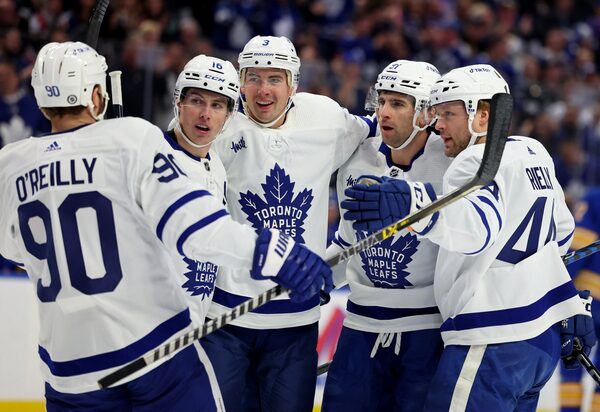 O’Reilly scored 37 seconds apart in an opening period the Maple Leafs led 4-0 on goals scored in a span of 8:18. And after Buffalo surged by scoring three times to cut the lead to 5-3 on Jeff Skinner’s goal with 3:31 remaining, O’Reilly sealed the win when his shot dribbled into the net with 1:10 left.