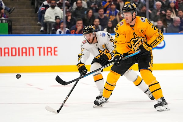 Nathan MacKinnon, right, of the Colorado Avalanche and Connor McDavid, left, of the Edmonton Oilers take part in the 2024 NHL All-Star Game. For years, these games have had little competitive feel, with players going through the motions at a fraction of what they're capable of.John E. Sokolowski/Reuters