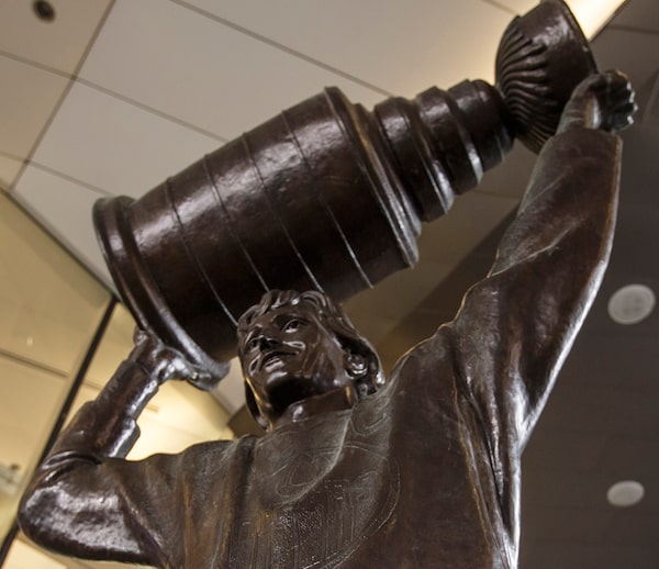 Wayne Gretzky, whose statue stands outside Rogers Place in Edmonton, has fallen far in Canadian public opinion since his friend Donald Trump returned to the U.S. presidency.Jason Franson/The Canadian Press